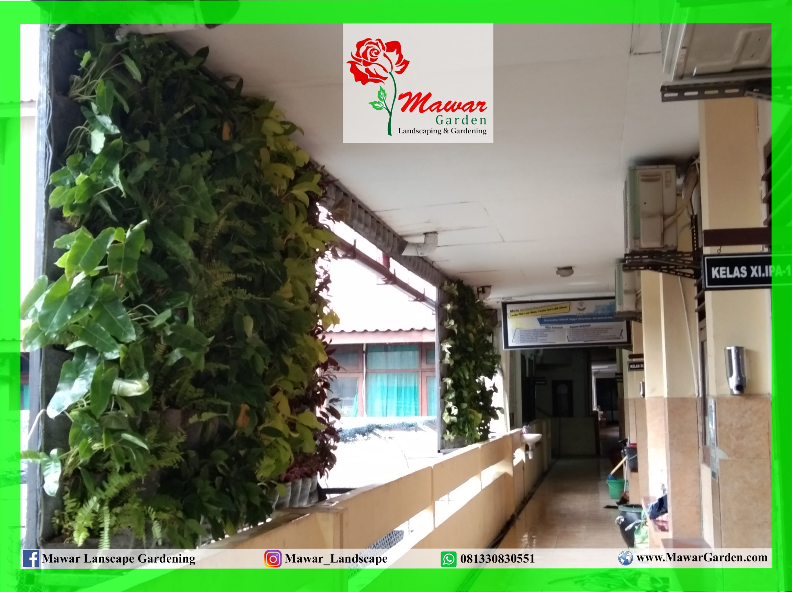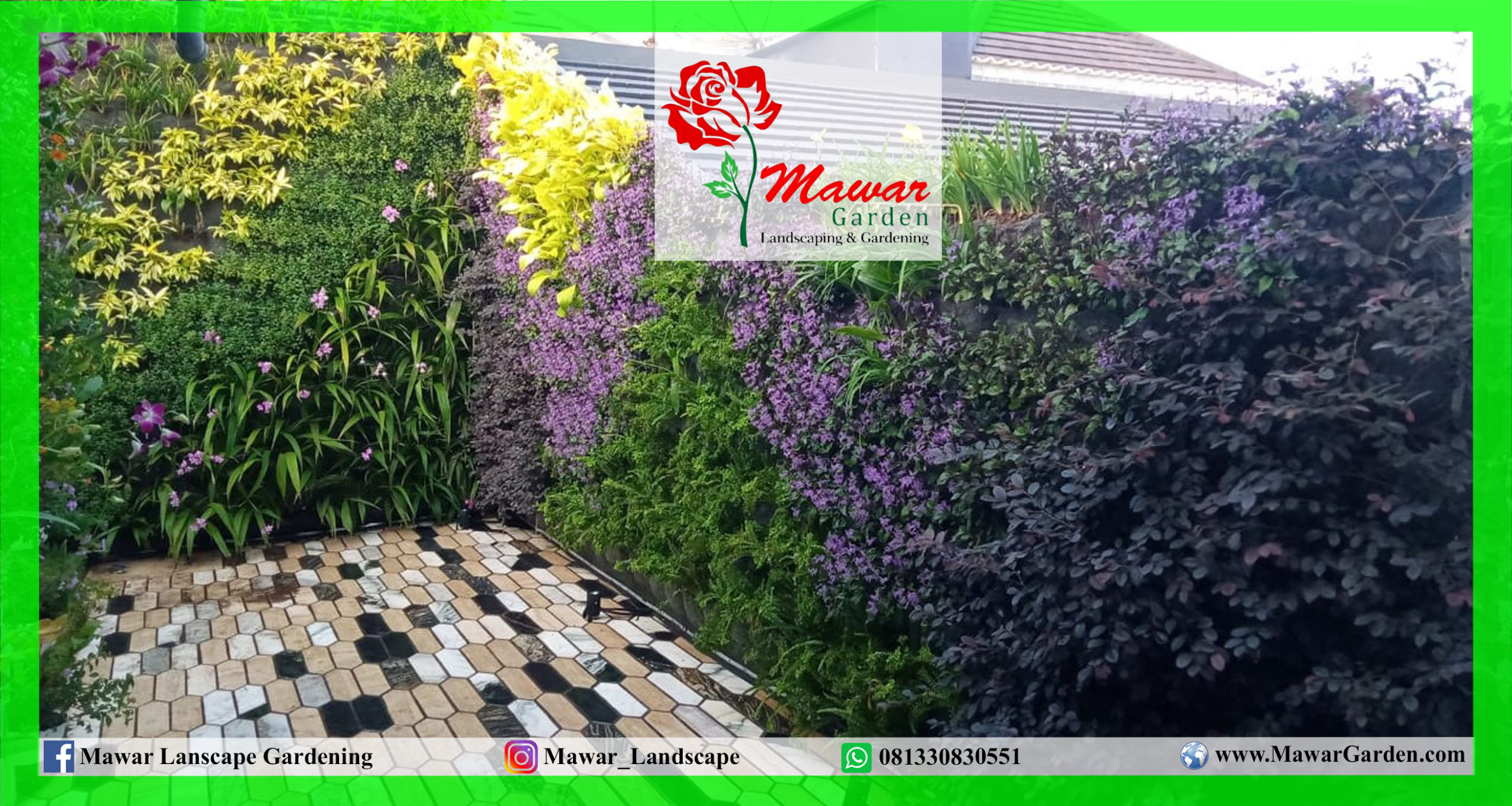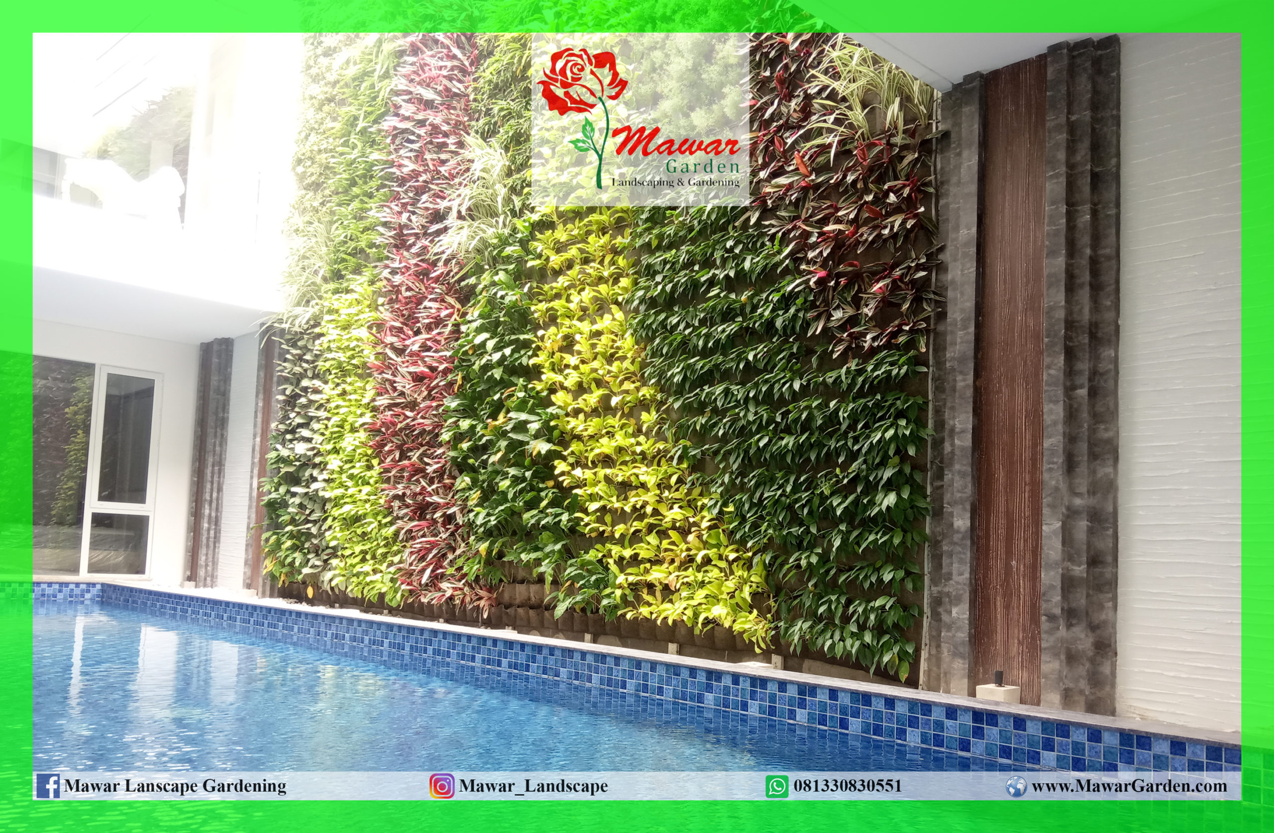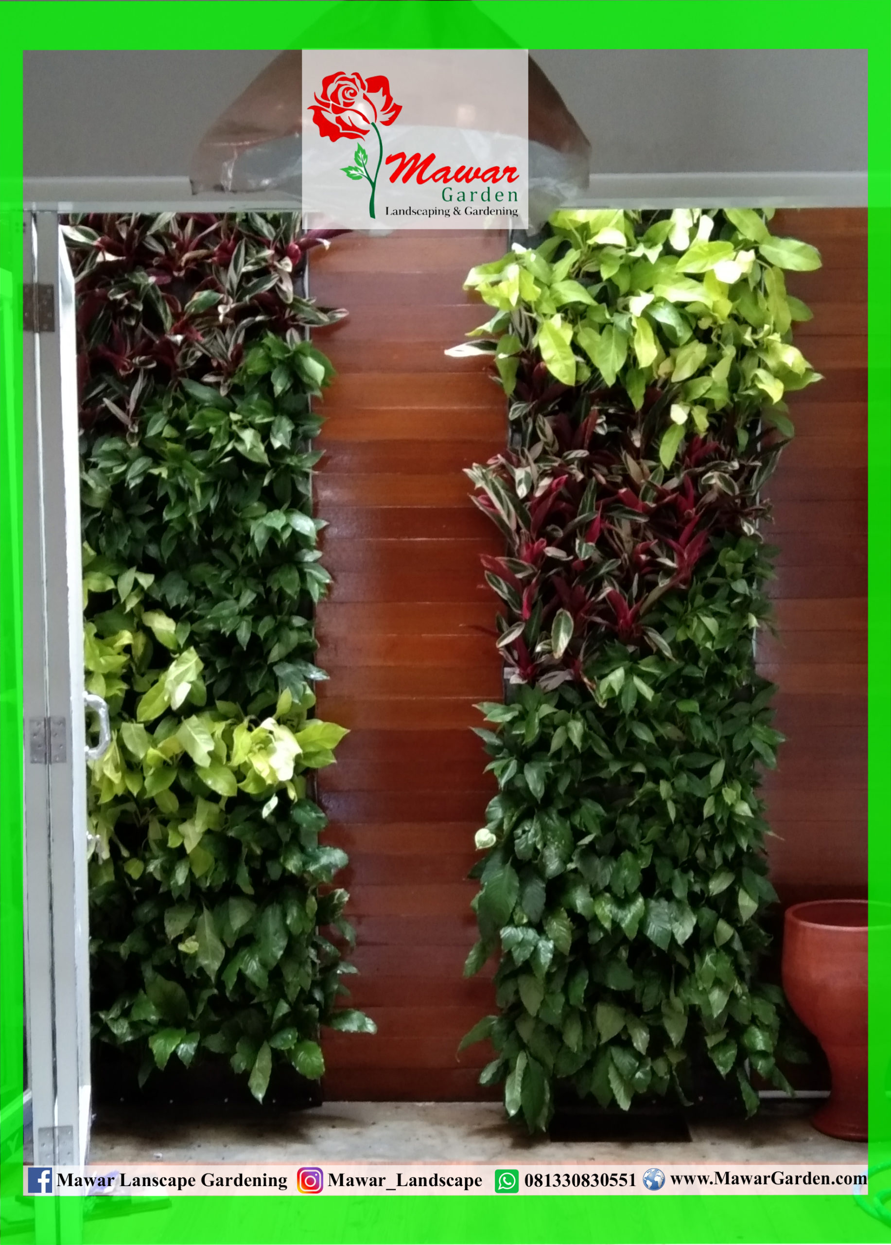 Vertical garden merupakan taman yang dibangun pada bidang yang berdiri tegak lurus dengan tanah. Hal inilah yang membuat vertical garden sering juga disebut dengan model taman dinding. Vertical garden di Indonesia juga sering disebut dengan taman dinding, green wall, vertical landscape, living wall, dan lain sebagainya. Secara sederhana, vertical garden berbeda dengan model taman horizontal yang kita kenal selama ini karena ditanam secara vertikal atau tegak lurus.
